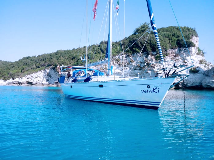 We are Fabrizio and Sari, life partners and a sailing couple in the Greek Ionian archipelago! We live in Italy during the wintertime, and we organize sailing trips in Greece from May to October.